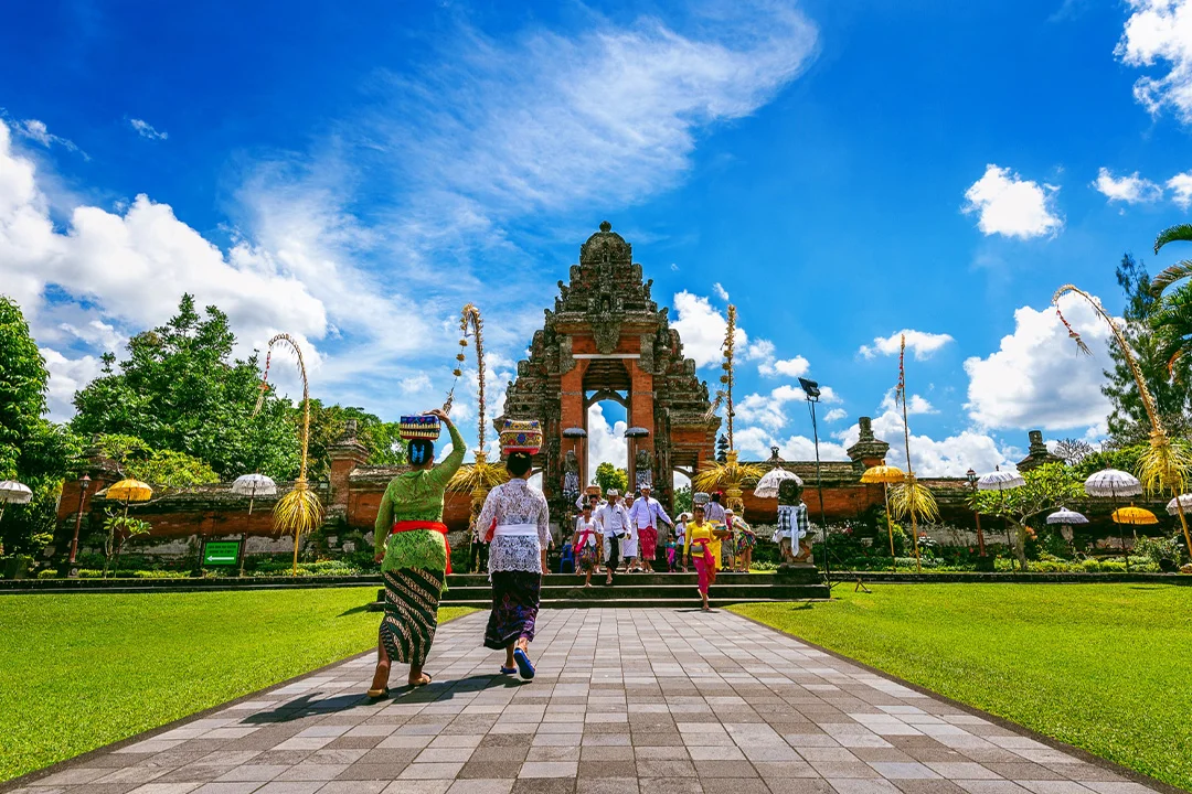 الانتقال من الفندق الى المطار للذهاب على الرحلة الداخلية المنطلقة الى بالي الاستقبال من مطار بالي والانتقال الى الفندق للراحة.