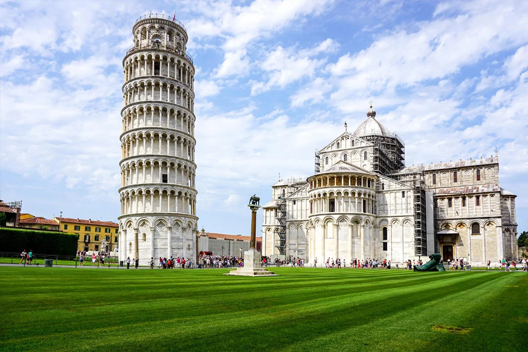 ميلانو – بيزا – روما اليوم، نتابع رحلتنا إلى بيزا. سنستقل قطارًا سياحيًا صغيرًا إلى ساحة المعجزات (Piazza dei Miracoli)، حيث سيكون لديكم وقت للإعجاب بأحد أروع وأجمل المجمعات الفنية في إيطاليا، بما في ذلك برج بيزا المائل الشهير. بعد ذلك، سنتوجه إلى روما، حيث نصل في وقت لاحق من اليوم.